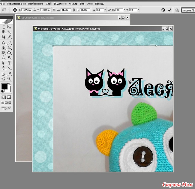 и начинаю двигать квадратики уменьшая котят, а что бы переместить, зажимаю картинку с котятами и двигаю на нужное место