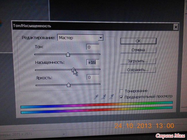 и двигаю стрелочку на дорожке насыщенность и цвет становится ярче пока не остановлюсь на нужном варианте, цифра к каждому фото индивидуальная получается, тут получилась 16
