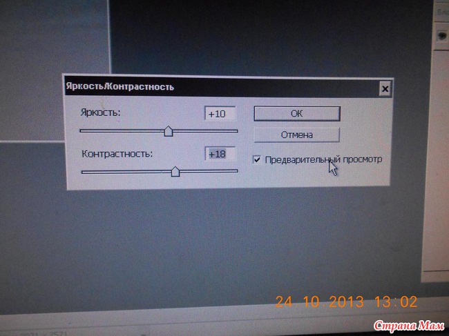 и так же двигаю стрелочку контрастность до понравившегося варианта, у меня цифра 18, и добавляю яркости, если фото кажется тёмным, только сначала добавляю яркость, а потом уже контрастность