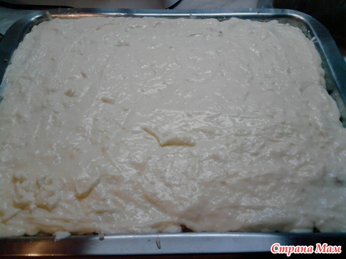 6. Залить, покрыв весь протвень, кремом бешамэль и посыпать оставшимся сыром везде (как посолить).