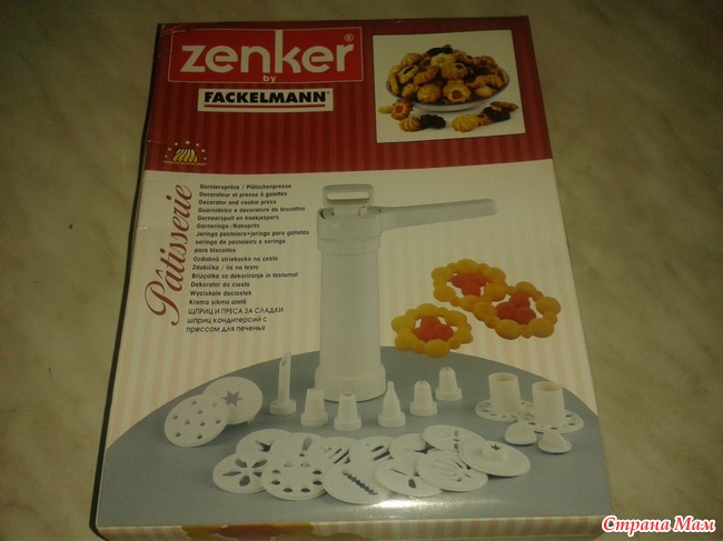Когда-то я купила себе такой шприц, правда у него поршень железный и сами формочки тоже, но там была брошюра с рецептами, печеньки получаются красивые, самое главное надо приноровиться сколько теста выдавливать, если по больше то печеньки красоту формы не держат, но у меня на поршне есть деления сколько теста надо на порцию, и это удобно, а у вас есть?
