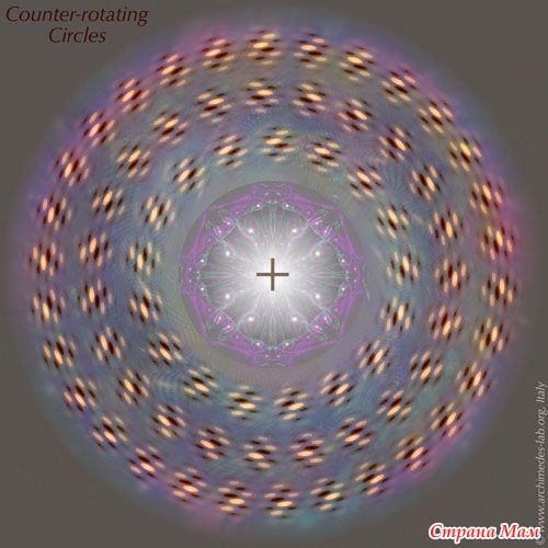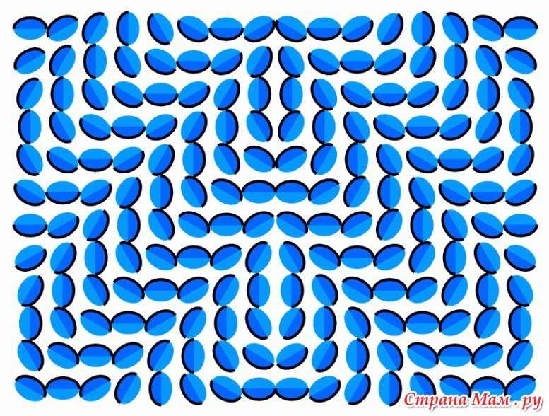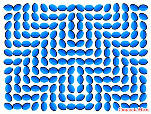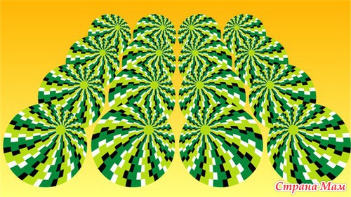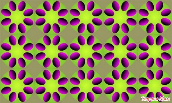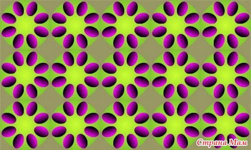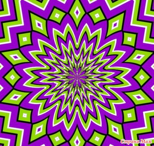 Здесь иллюзия движения возникает, когда картинку приближешь и удаляешь. Ну т.е. нужно, глядя в центр картинки. подвигать головой к монитору и от монитора.