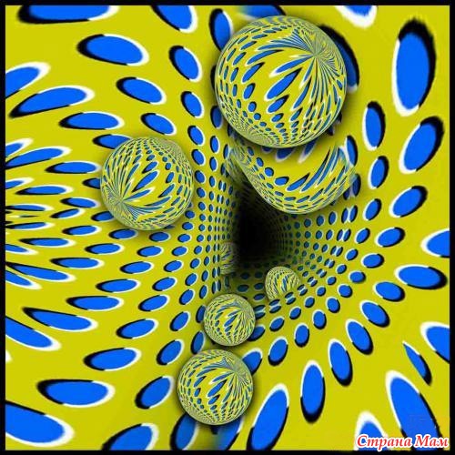 Навеяно фотографиями с оптическим обманом. Ведь как все-таки интересно устроен наш мозг! Заставляет нас не видеть того, что есть. И видеть то, чего нет на самом деле! В данном случае - движение на абсолютно неподвижных картинках.