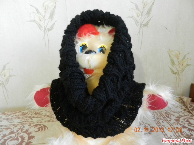 А вот я и закончила свой первый снудик. Правда еще не успела выгулять, поэтому фото на ляльке. Принимайте мое рукоделие.