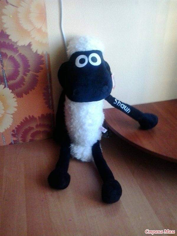 Заказала для дочки игрушку Барашек Шон. Она очень любит этот мультик. У продавца есть три размера, ну я конечно заказала самую большую 80см. Качеством очень довольна. Материал мягкий, приятный и совсем не воняет. Конечно можно было им побольше синтипона напхать в лапы и хвост, хотя и так нормально. Игрушки эти Китай шьет для Германии. Я хотела именно с вышитими глазками, так как дочка будет с ней спать. У точно нас такая стоит около 200 грн., а мне вынесло 93грн. Доставка заняла около 20 дней. Реальное фото сделано телефоном: