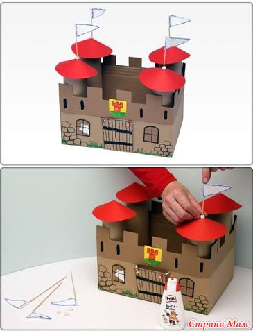 Замок должен быть надежно защищен от драконов и других монстров! Именно поэтому в этом замке есть подъемный мост. Замок выполняется очень просто, займет час-полтора Вашего с ребенком времени, станет отличной игрушкой или показательным проектом для садика.