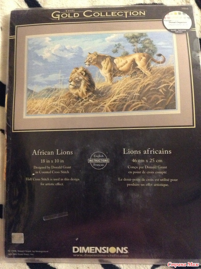 ), вместе выбрали набор львов от Дима и не зря же говорят мысли материализуются, зашла в рукодельный магазинчик, а там распродажа наборов для вышивания, у них из-за переезда некоторые наборчики утратили свой товарный вид, и как раз то, что я хотела и есть на распродаже со скидкой в 700 руб. Ну конечно же хомяк не усьоял и вот купилана фото хорошо видно, что коробочка немного затерта, вот они и скинули цену.