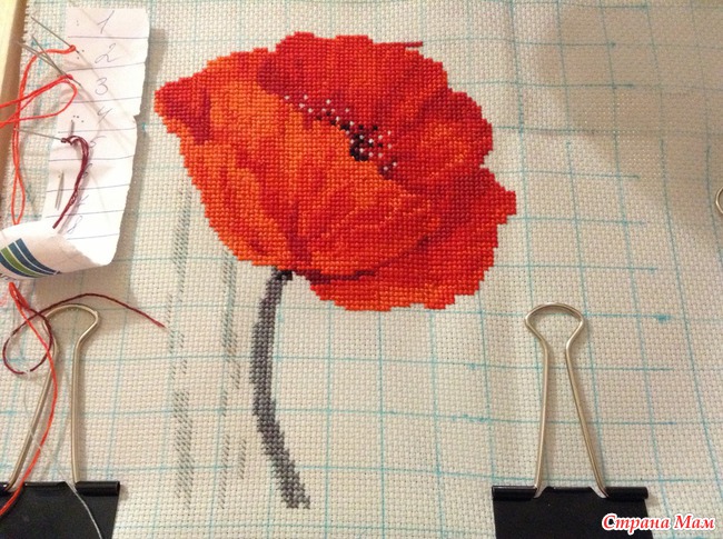 Не прошла я и мимо новинки от Риолис Алые маки, уж очень они маме понравились (правда она на набор и спонсировала и будет он ей по окончанию и подарен)
