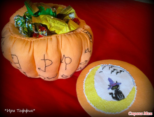 И тут как нельзя кстати начался набор в игру-обмен в соседней группе на тему Хэллоуин. Идея родилась мгновенно - шкатулка-то - вылитая тыковка