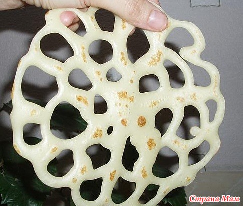 Печь блины на раскаленной сковородке.. ( И что мне понравилось - не надо крутить сковороду. когда наливаешь тесто. сковородка стоит себе на плите. У меня. например, она большая чугунная и тяжелая.) У меня вот такие цветочки получались....