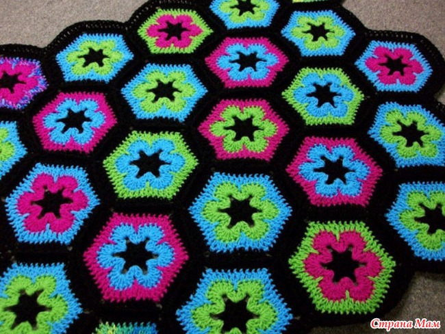 выкладываю заманушку: цветовые варианты разных пледов связанных по мотиву "африканский цветок", которые я нашла в инете