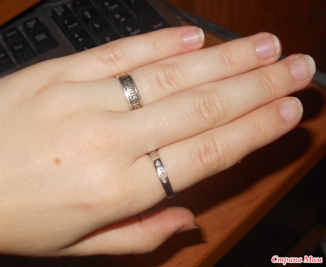 Колечки заказывала в честь того, что у меня есть замечательная дочка - на кольце такой хорошенький след ножки! Хотела заказать себе и мужу, но оказалось, что у этого продавца такого большого размера нету((, а заказать хотелось именно у него, потому что у него пара стоит 170 рублей, а у других - одно 170 рублей. В итоге решила заказать себе и подруге, а мужу - у другого продавца самое большое (хотя оно скорее всего придет малое).