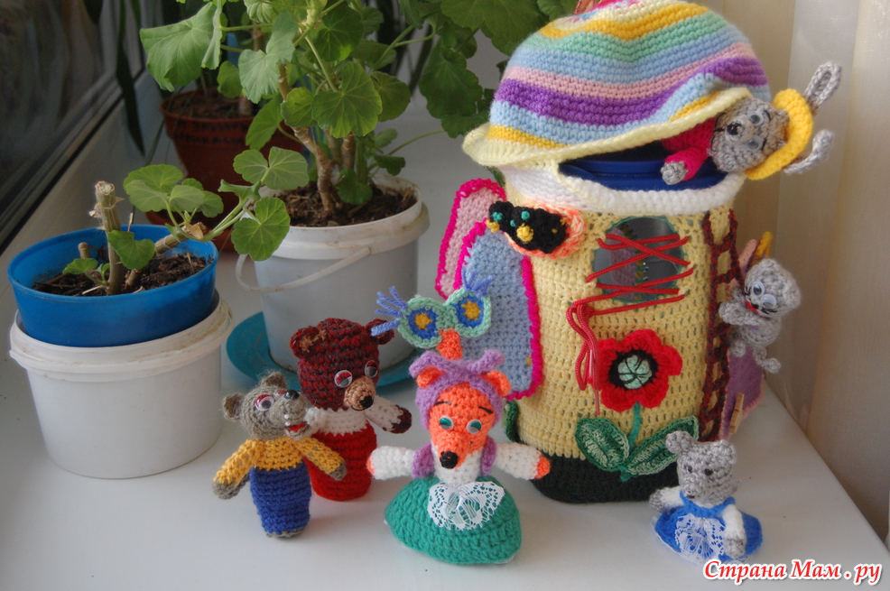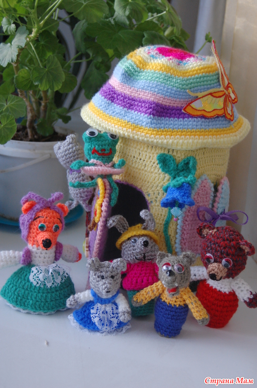 Связала, Вот связала такое чудо.!!! Нашла В интернете мастер класс от Яны ГОРОВОЙ!!! Отличный мастер класс. Доходчивый, красочный, ЯРКИЙ и вяжется на одном дыхании. Правда, этот теремок для деток, которые уже постарше. В рот игрушки не тискают. А для самых маленьких надо всё же вязать тот теремок, который мастер класс у Дарьи НИКУЛИНОЙ. Там ВСЁЁЁ вывязывается. А здесь я глазки и носики приклеивала, да и на самом теремке много пластики. Но КРАСИВОООО!!! Я очень довольна