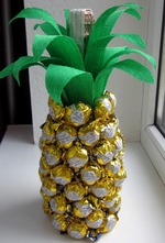 Всем здравствуйте! Недавно делала ананас из конфет ( https://www.stranamam.ru/post/6295065/), потом захотелось попробовать ещё и с шампанским. Вот что получилось.
