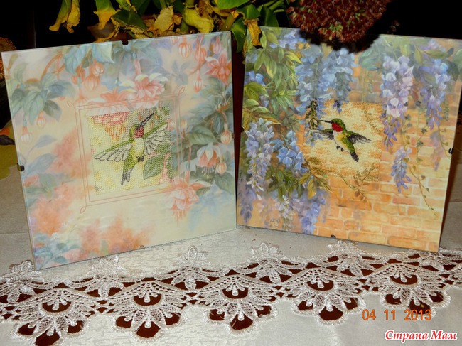 Очень милые работы, размер 20*20см, все идет в комплекте: и паспарту, и стекло. Сразу захотелось и оставить себе и подарить маме, сестре и еще к-н... наверное закажу еще такие. Покупала в СП, одна стоит примерно 12$