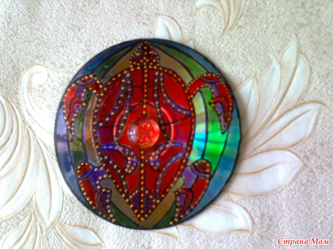 Черепашка-магнит. Витраж на диске. (мастер-класс). https://www.stranamam.ru/album/4803734/