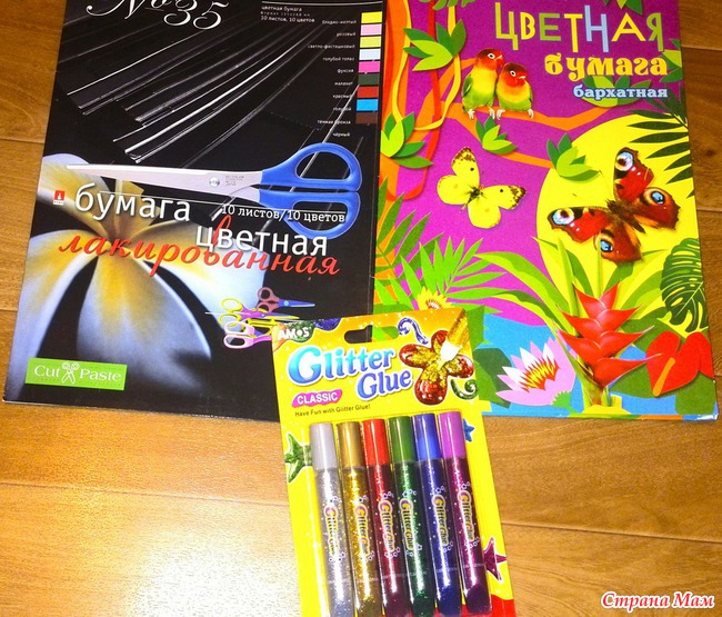 Для моих рукоделок: набор бархатной и лакированной бумаги и клей с блестками, красотааааааа