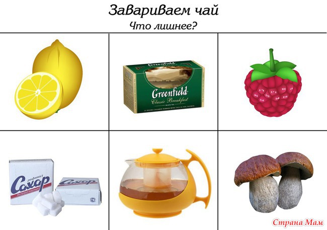 Жаль, печатным материалом не смогу воспользоваться. Но картинки "Что лишнее" и "посуда" на компьютере покажу.