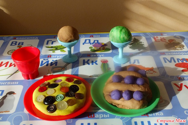 Лепили с сыном из соленого теста разные вкусняшки.