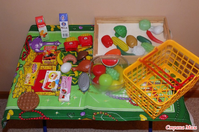 Давала задание сыну - купить продукты. Должен был по памяти выбрать несколько продуктов, сложить их в корзину и принести мне. Играли несколько раз.