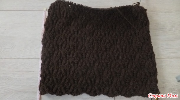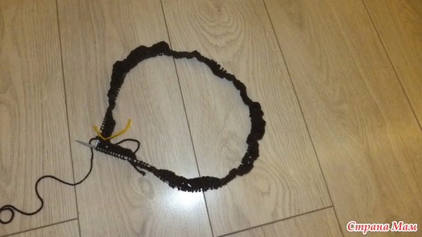 Если, как я, для не замкнутой в круг вещи, то советую сделать в конце 2 петли дополнительно изнаночной глади, а то левый край полотна "играет", не ровный, в то время, как правый красивый и ровненький.