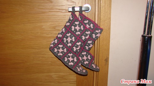 Вот описание, квадратики и другие можно взять, сейчас хочу выпуклыми цветочками попробовать связать, а подошву я делала из войлока, но можно и стельку поплотней купить