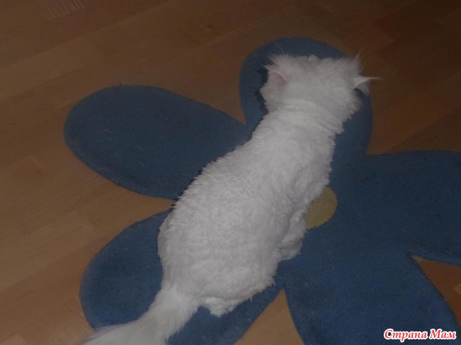 Ходит, не может привыкнуть. А вообще парикмахер кошачий сказала, что ей может быть холодно поначалу (шубы-то нету!) , но у нас вроде тепло. Ничего, до свадьбы отрастет!