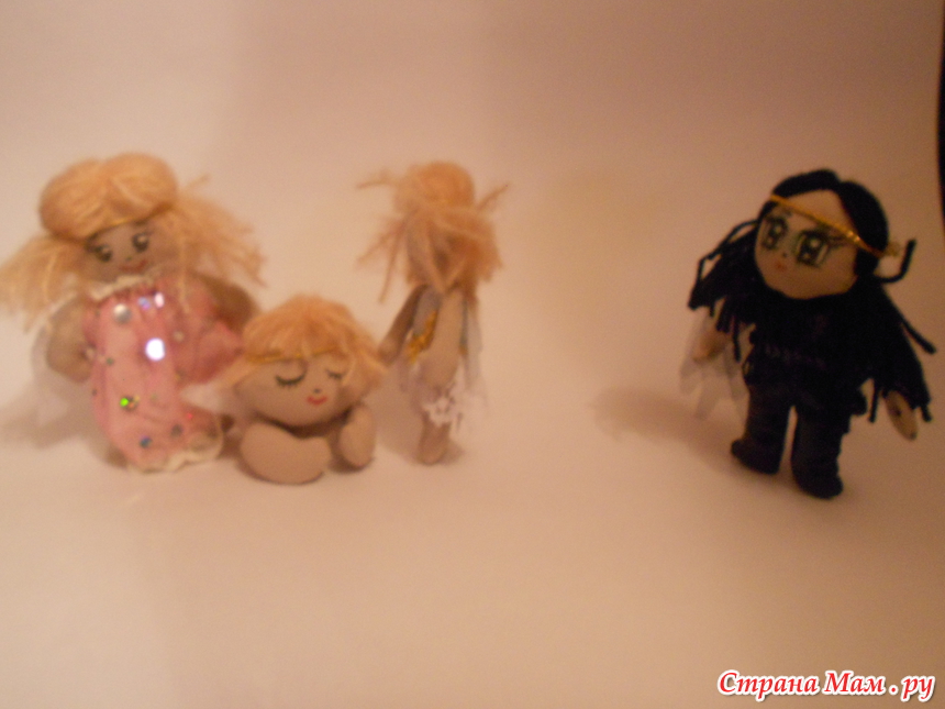 Предновогодние ангелы... три белых и почему-то вдруг появился один чёрный... эдакого готишного виду... выпал, бедняга из гнезда. Подобрали его неформалы и воспитали по-своему... Прилетел сиротинушка к своим братьям-сёстрам... и все фшоке)))