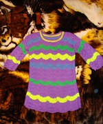Сначала это было длинное платье. Теперь дочка носит его как длинную кофточку под брючки. Стирается легко и также быстро сохнет. Застёгивается на плече тремя пуговицами. Любимое дочкино платье