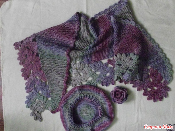 Берет, бактус и брошь. Берет вязался простыми столбиками без накида по наитию, так сказать. Бактус под вдохновением вот этого прекрасного онлайна https://www.stranamam.ru/post/5361756/. Получился давольно внушительный 144см на 44 см, так что можно носить как минишаль и даже как платок на голову. К сожалению, фото на модели пока нет да и фотограф из меня никакой, но возможно, что потом еще добавлю фото. Вот такой небольшой подарочек сестренке получился