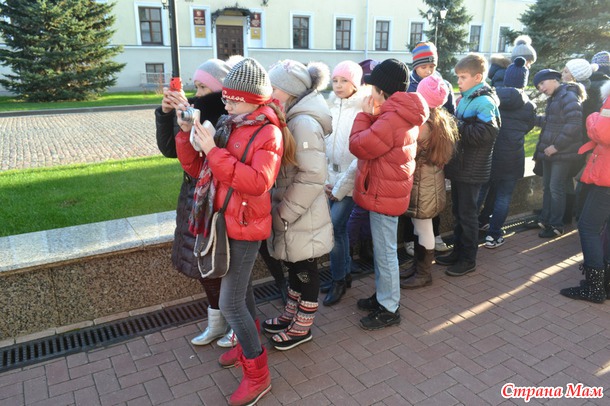 Дети разделились на две части: одни сидели на каждом стуле, другие слушали экскурсовода и фотографировали всё, что интересно.