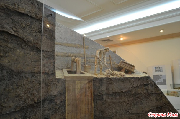 Следующий зал. Дети увлеклись археологическими раскопками (докопали в итоге до дна контейнера