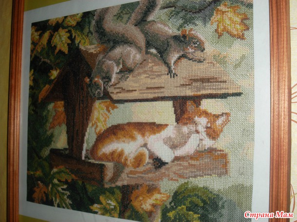 . Увидела и пропала-до чего же похожа на нашу кошку!!! Размер работы 30*35 см, мулине ПНК им. Кирова. Пролежала, бедолага, почти полгода в ожидании "чуда". Ну, вот и всё, спасибо за внимание и ваши комментарии!