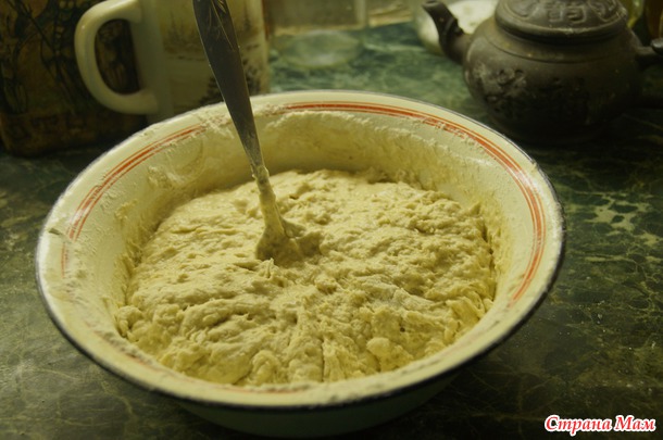 4й день - добавляем теплой воды, половину от объема закваски, муку до состояния сметаны.
