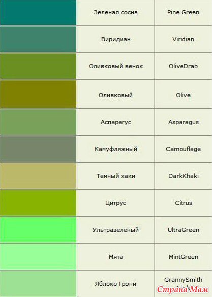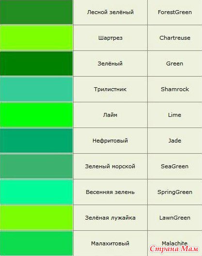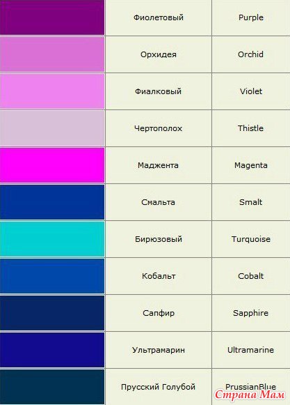 Тэги: таблица цветов