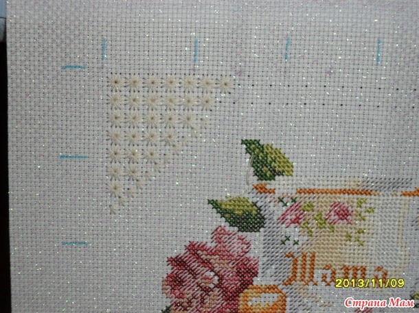 И сразу же взялась вышивать "Мамину чашку" в подарок маме на день рождения в конце ноября.