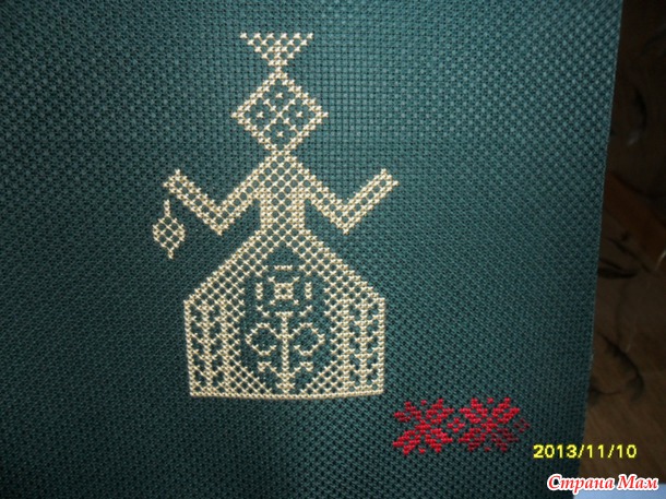 . Задумала вышить оберег в подарок сыну по схеме Молодецкой. Начала как обычно "изучать матчасть" )), готовиться теоретически. И оказалось, что кроме соблюдения определённых правил по самой вышивке необходимо для начала вышить самой себе Макошь. Поэтому выбрала для себя схему, купила зелёную канву и в нужный день начала шить Макошь. Чашку на время отложила. Вот что было вышито на вчерашний день (сегодня уже больше))