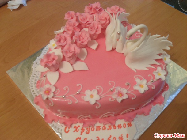 Вот такой был тортик на годовщину свадьбы, Хрустальная свадьба, я предлагала заказчице разные варианты оформления тортика именно на данную тематику, но она захотела именно такой... ну что ж "Хозяин - барин"