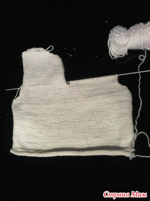 Спинка : для пройм закрыть в каждом втором ряду по 2, 1, 1 петли= на спинку 30 петли. На высоте40 см закрываем центральные 14 петель. Через 2 см закрываем петли плеч.