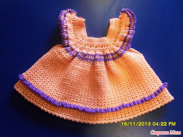 За основу брала сарафанчики тут http://crochetclub.net/blog/sarafanchiki-dlya-malyshki-ot-3-do-6-mesyacev/, но немного переделала схемку.