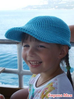 Кепка связана из ниток Семеновская пряжа Беби, вискоза 10%, акрил 90%, 100 гр. 300 м, крючок 2, ушло пряжи 60 гр, для мальчика 4 лет. Описание взято с http://glinchak.com/odezhda/master-klass-kepka-utochka-t84.html