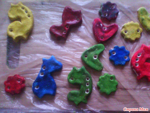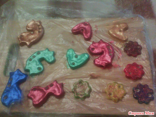 когда высохло тесто я его покрасила гуашью вместе с сынулей и оставила сушится