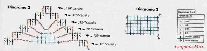 Как делать: Сделать цепочку из 391 в.п и 1 соед.ст. замкнуть в кольцо. Работаем по кругу. В 1 ряду сделать 1 в.п, 4 ст.б/н, 6 в.п, пропустить 6 в.п. предыдущего ряда, 4 ст с/н, 6 в.п, 7 ст б/н, 6 в.п и 4 ст с/н. Повторите 6 в.п, 7 ст б/н, 6 в.п и 4 ст с/н до конца ряда. Со 2 ряда до 120 ряда следуйте схеме 1 и повторите более 16 раз.