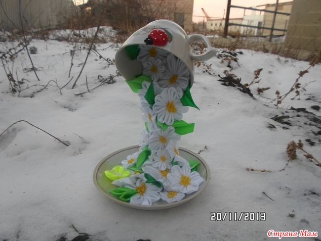 Вот и я осилила летающую чашку с ромашками. Делала на конкурс в детский сад. Хвалюсь с нетерпением. Как вам???
