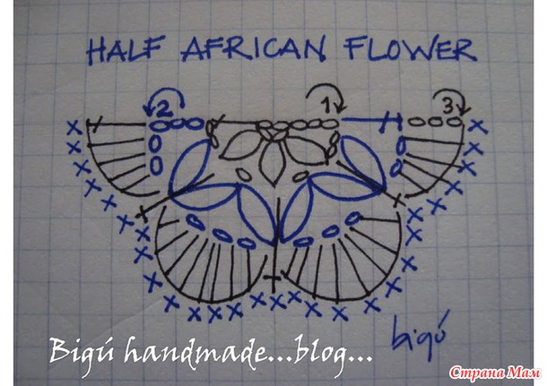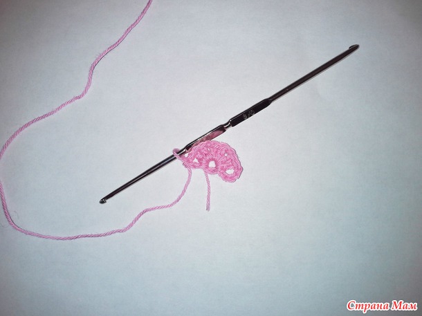Вяжем 3 вп и 1 ссн в первую петлю, далее столбики с накидами в каждую петлю и 2 ссн в последнюю.