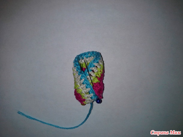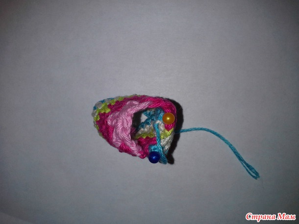 4 ряд. Ввязываем нить другого цвета. Закрепляем нить.