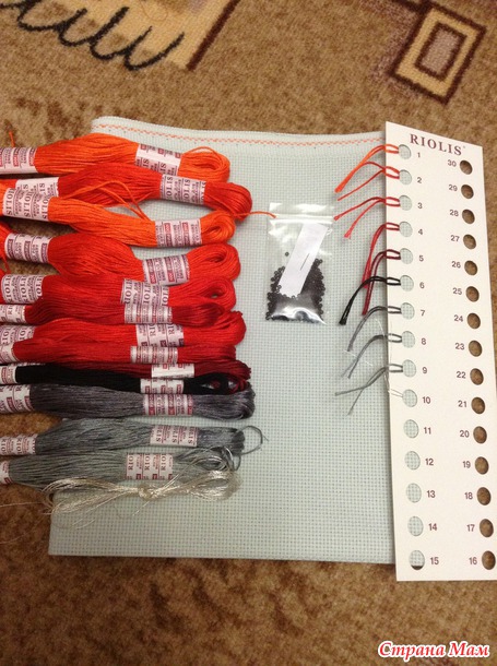 Покупала готовый набор фирмы Риолис, Счетный крест Размер: 70х30 см, канва Аида 14, нитки: мулине Anchor, бисер, цветная схема для вышивания.. Вот что было внутри.