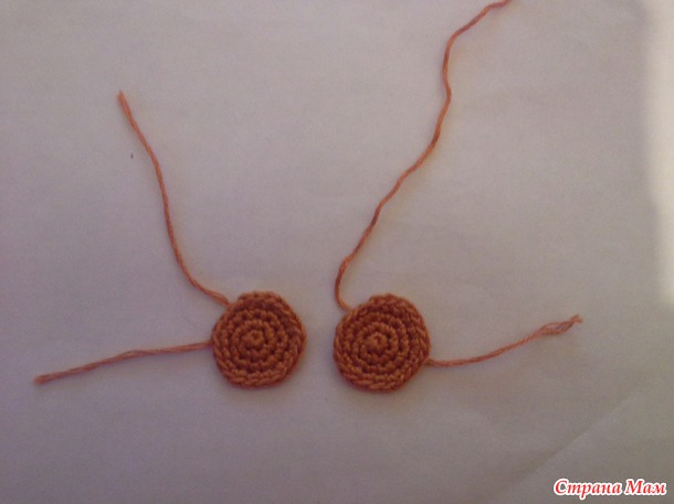 Нитью коричневого цвета делаем кольцо амигуруми и набираем 6 вп.
