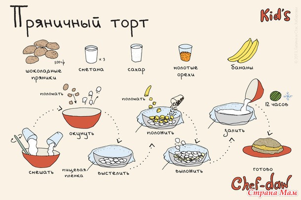 Конечно же, мы с Вами активно привлекаем детей к помощи на кухне. Пряничный торт ребёнок спокойно сделает сам: помощь родителей ему не понадобится. Разве что - помочь съесть
