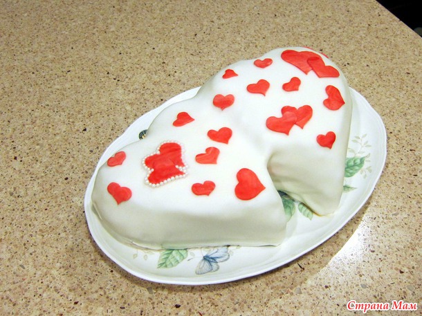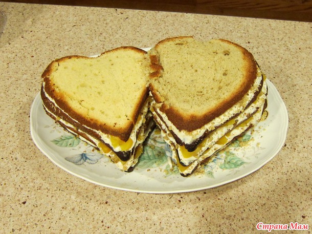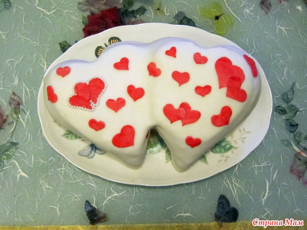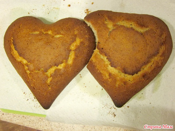 Один корж был чуть выше, другой пониже, поэтому одно сердце вышло на уровень выше другого, но это даже хорошо